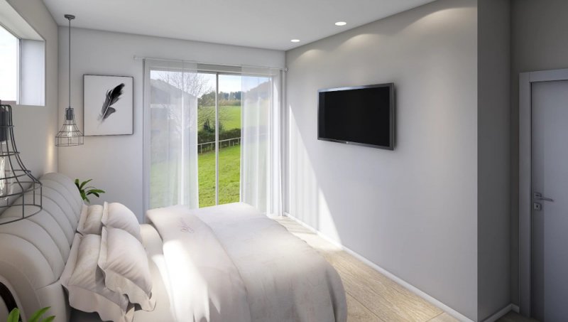 Dispozice: Objekt má jedno nadzemní podlaží s jednou jednotkou 3+kk – vstup se zádveřím as chodbou, obývací pokoj s kuchyňským koutem, koupelna, technická místnost, pokoj a ložnice.