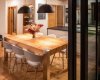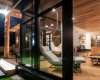 Dům se sloupy z douglasky stojí na magickém místě u březového hájku, na který je z domu krásný výhled. Nízkoenergetický dům ve tvaru L je mírně zapuštěn v terénu a jeho vstup je zvýrazněn dveřmi veselé červené barvy. Sloupy nesoucí přesah střechy jsou mohutné a vytvářejí dojem stability. Na sloupy u terasy je použita douglaska tisolistá, jež měla dlouhá léta své kořeny zapuštěny v pozemku a kterou do výsledné podoby opracoval sám majitel. Obvodové konstrukce tvoří masivní dřevěné panely DEKPANEL. Horizontální pás oken je zvýrazněn změnou obkladu fasády. Mezi okny je cedrový šindel. Dřevěný obklad je navržen také z cedru bez nátěru – barva dřeva se bude měnit podle expozice a světové strany. Terasa propojuje obytné místnosti orientované k severu. Průhled je od východu přes terasu až do obývacího pokoje. Obývací pokoj je propojen se zahradou. Směrem na sever do zeleně je celá stěna prosklená. Otevřenosti prostoru přispívá i propojení s halou, ze které se vstupuje do ložnic, koupelny a WC. Srdce domu, krb s betonovou stěrkou, je umístěn u skleněné stěny. Kuchyně s její pracovní plochou je prosvětlena rohovým posuvným oknem. V koupelně je použita velkoformátová dlažba a stěrka na stěnách v šedém tón u v kontrastu s nábytkem z olivového dřeva. Celý dům se nese ve znamení dřeva – cedrové obklady na stropech, v koupelně olivové dřevo, sluneční neboli březový pokoj, dubová prkna na podlaze, fasáda z cedru, smrková konstrukce, třešňový jídelní stůl a v neposlední řadě sloupy z douglasky.