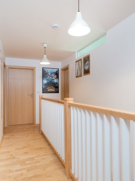 Srdcem prostorného domu pro početnou rodinu, je jídelna s krbem – světlý a vzdušný prostor na stolování, práci, hru a setkávání s přáteli. Příjemnou atmosféru v interiéru dotvářejí dřevěné prvky a starší nábytek s půvabnou patinou z původního bydlení.