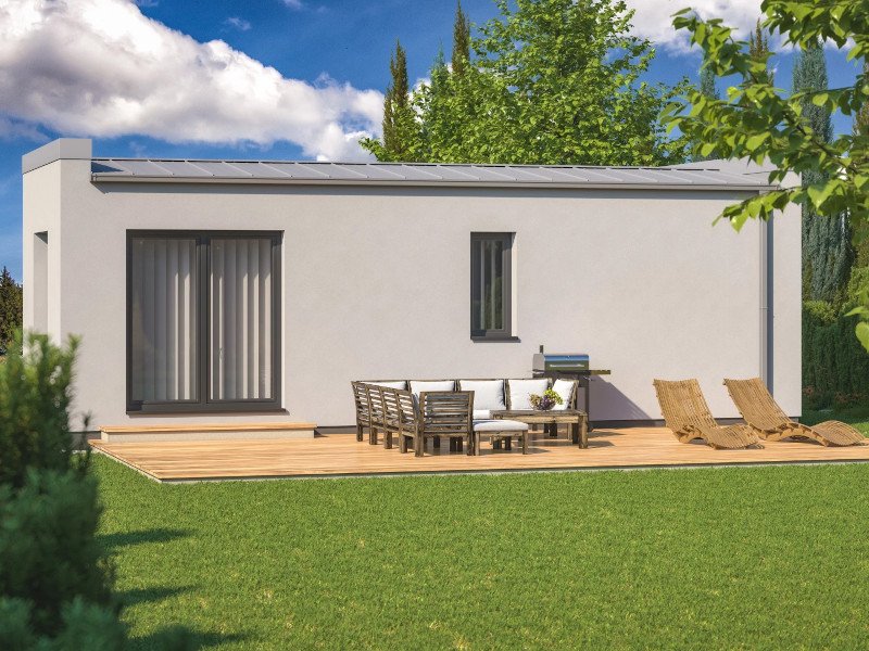 Bungalov Easy 2-28 ve stylu mobilheimů je ideální například k víkendovému bydlení na malé pozemky. Celková užitní plocha pouhých 28 m2 skrývá obytnou část, ložnici a koupelnu. Co víc si přát, uklízet nemusíte téměř nic.