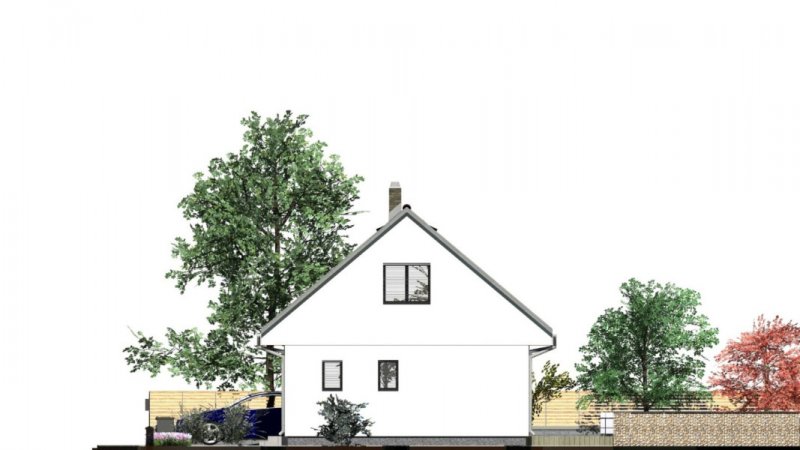 Domky MS 03 lze doplnit přistavěnou garáží nebo otevřeným stáním pro automobil.