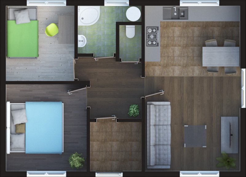 Dřevostavba na klíč First je přízemní rodinný dům - bungalov, který lze realizovat jako bydlení pro mladý pár či jako seniorské bydlení. Svojí architekturou se tato malá dřevostavba hodí jak do města tak na venkov.
