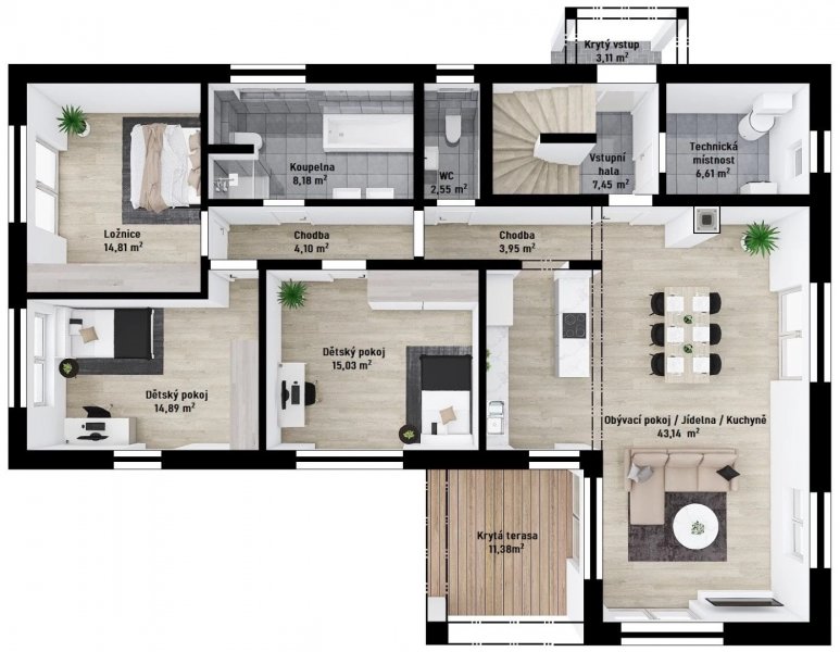 | Cena dřevostavby na klíč (vč. DPH): | 11 157 000 Kč Spočítat financování |