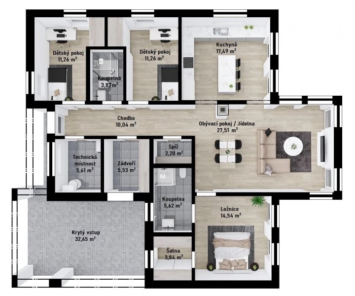 | Cena dřevostavby na klíč (vč. DPH): | 8 197 000 Kč Spočítat financování |