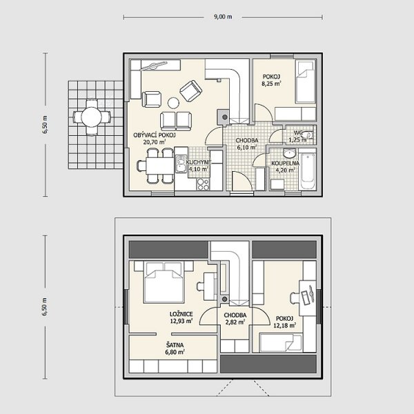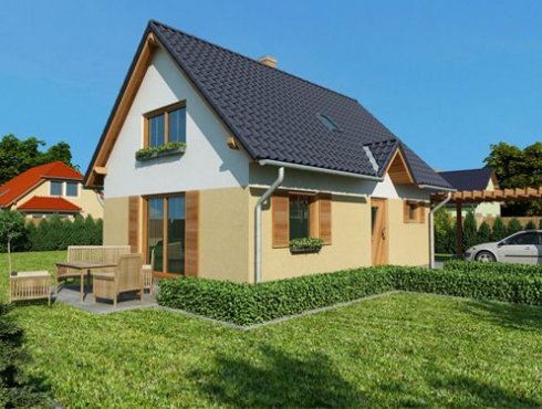 Ekonomická dřevostavba na klíč poskytující standardní bydlení čtyřčlenné rodině nebo komfortní dvoučlenné rodině na stáří s pokoji pro hosty nebo hobby místností. Vhodná i jako rekreační domek.