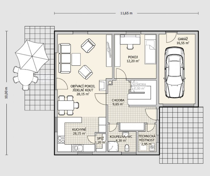 Tato dřevostavba na klíč se vyznačuje vysokou užitnou hodnotou svého prostorového řešení. Technická místnost může být využita jako prádelna či sušárna.