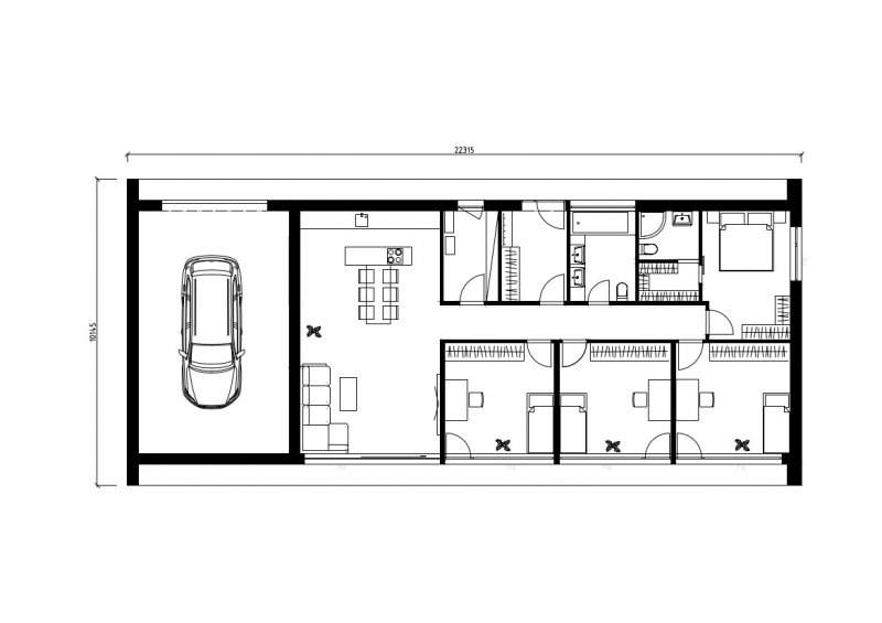 Světlo, vzduch, nádech, výdech... Prostor, který vás ohromí svojí plochou a nechá do každé ložnice vstoupit slunce. Dům je navržen pro velkou rodinu.