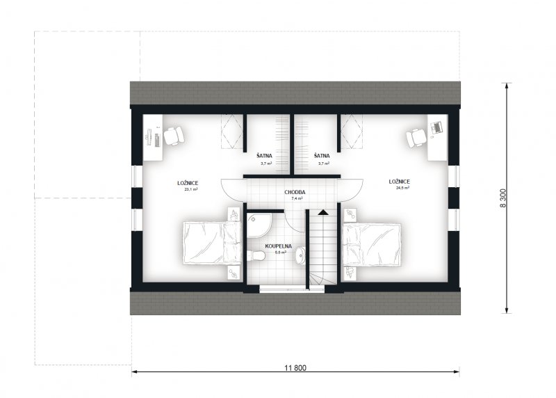 Tuto dřevostavbu lze realizovat i jako dvojdům.