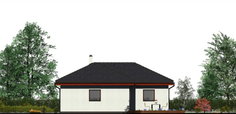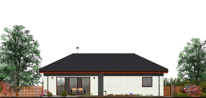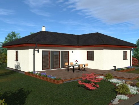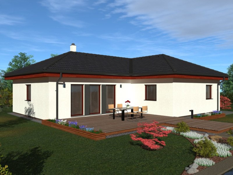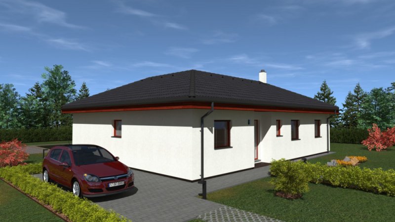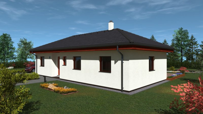 U této dřevostavby na klíč jsou všechny obytné funkce soustředěny do přízemí a orientovány do obytné zahrady. Dřevostavba nepředpokládá podkroví, i když je za příplatek možné. Varianty lze též podsklepit. Dispozice této dřevostavby je postavena na velkém obývacím prostoru se vstupní částí se stolováním a s částí odpočinkovou. Na jídelní část přímo navazuje oddělitelná kuchyň, ze které je přístup do spíže. Pokud je dům nepodsklepen a ani se nepočítá s využitím podkroví, je možno pokoj u vstupu zvětšit o prostor schodiště, případně jej vybavit samostatným vstupem. Pak je možno jej používat např. jako oddělenou kancelář.