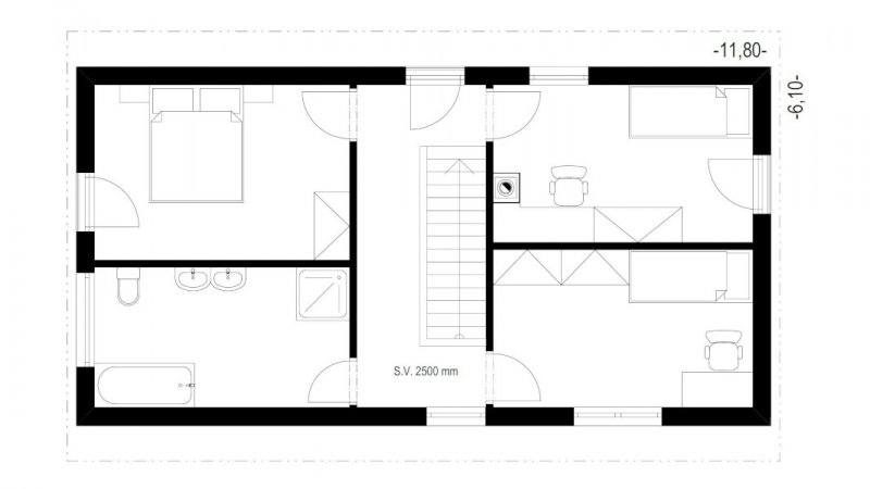 Dispozice je klasická 5 + kk ve dvou podlažích se zajímavým průhledem z galerie, užitná plocha domu je 114 m2. Za příplatek je také možné dům prodloužit.