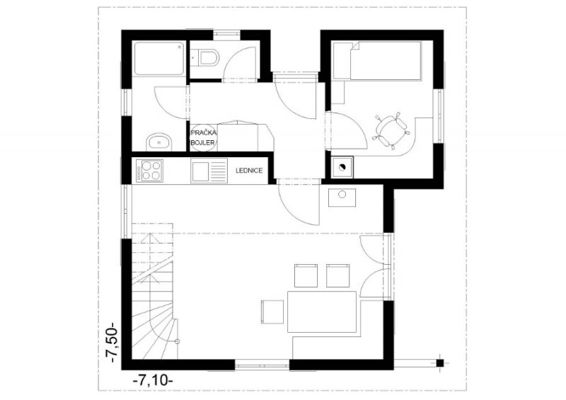 Díky otevřené dispozici je možno po většinu topného období vytápět dům krbovými kamny a tím výrazně šetřit náklady na bydlení či rekreaci.
