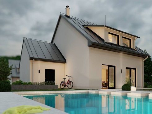 Díky zastavěné ploše 107,5 m2 je rodinný dům NOVA 101 vhodný i na menší parcely. Podíváte-li se na půdorys přízemí, zjistíte, že slouží převážně jako společný prostor pro celou rodinu, podkroví potom poskytuje soukromí pro každého jejího člena. Okna obývacího pokoje jsou směřována do zahrady, nabízí se tedy vybudování terasy přístupné z domu. Střechu ozvláštňují dva vikýře, které zároveň zvětšují a prosvětlují podkrovní pokoje.