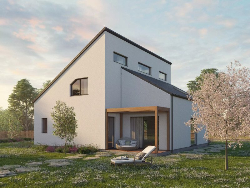 Patrová dřevostavba navržená v difuzně otevřené konstrukci. Prostorný dům je vhodný pro čtyř až pětičlennou rodinu. V přízemí se nachází velký obývací pokoj s koupelnou, ložnicí a technickými místnosti a vzhledem k vybavení přízemí dovoluje užívání pouze tohoto podlaží.