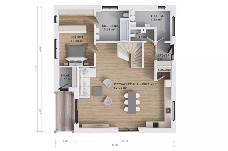 | Cena dřevostavby na klíč (vč. DPH): | 7 085 410 Kč Spočítat financování |