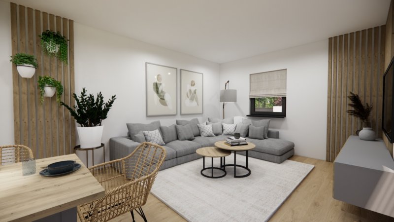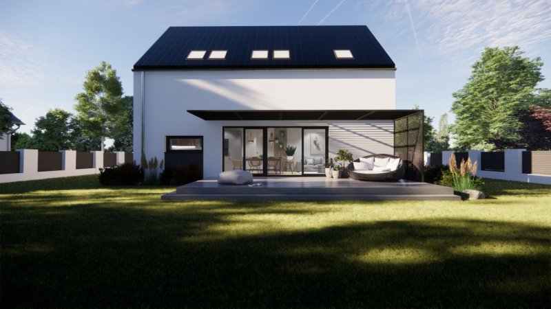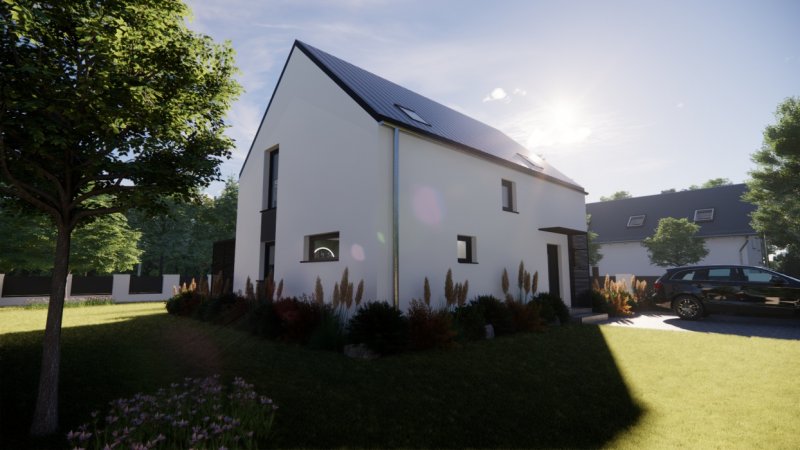 Patrová dřevostavba Easy 75 o zastavěné ploše 80,7 m2 a dispozici 5+kk. V přízemí najdeme prostorný obývací pokoj s kuchyňským koutem, koupelnu, samostatné WC, technickou místnost, chodbu a zádveří. V horním patře je umístěna ložnice, 3 pokoje, koupelna s WC a chodba. Tento prostorný dům je vhodný pro čtyř až pětičlennou rodinu. Podívejte se na krátké video vizualizace: