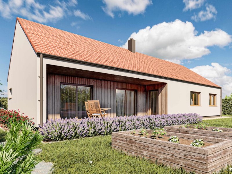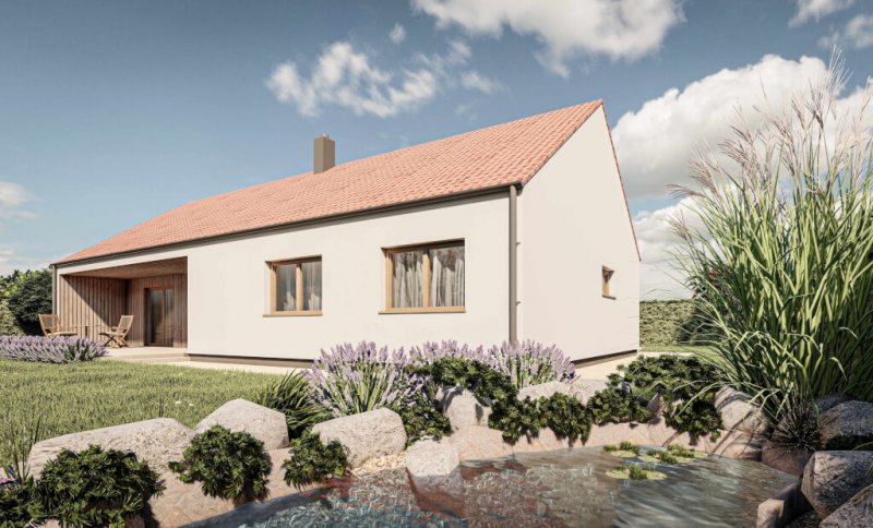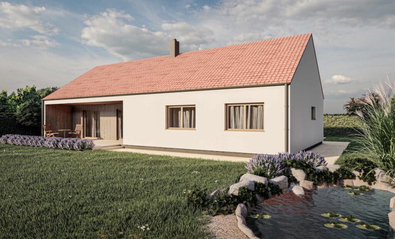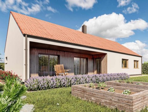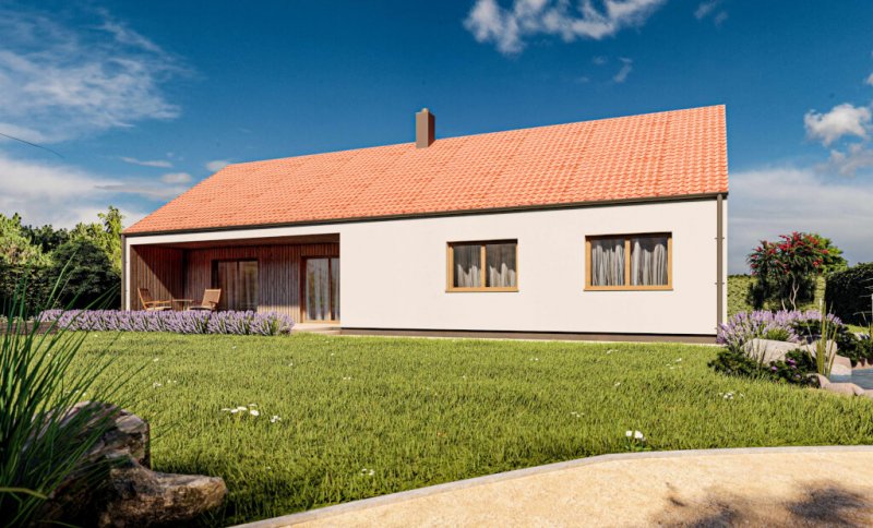 Sto jedenáct metrů užitné plochy v nízkoenergetickém provedení difuzně otevřené konstrukce nabízí dřevostavba, která poskytne komfortní bydlení i větší rodině. Kompaktní dům s integrovanou terasou, velkým obývacím pokojem, dvěma koupelnami, pracovnou, šatnou a třemi dalšími místnostmi je ideální investicí pro komfortní, nízkoenergetické a estetické bydlení jak ve městě, tak na venkově.