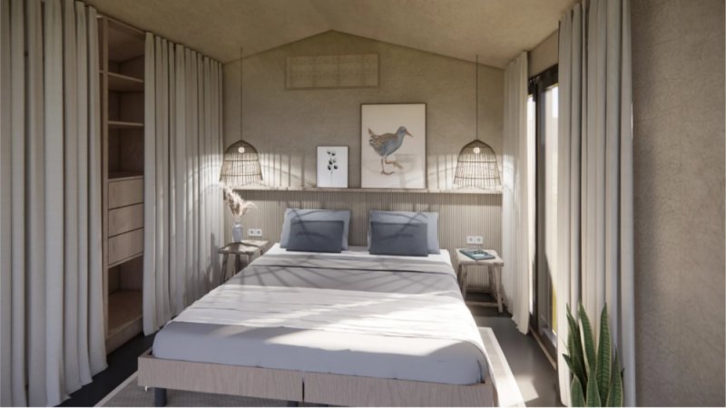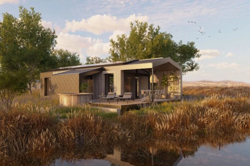 Domy mají dispozici 3+kk (užitná plocha je 42,5m + sauna 4,3m2 a terasa 22,8m2), což je ideální velikost pro menší rodinný dům nebo rekreační objekt. Jsou postavené na zemních vrutech, které zajišťují stabilní a spolehlivý základ. Vytápění je řešeno úsporným tepelným čerpadlem vzduch-vzduch, v koupelně je instalováno elektrické podlahové topení, a celý dům je vybaven rekuperací vzduchu, která zajišťuje zdravé a příjemné prostředí. Součástí domu je vnitřní instalace pro chytrou domácnost od firmy Loxone.