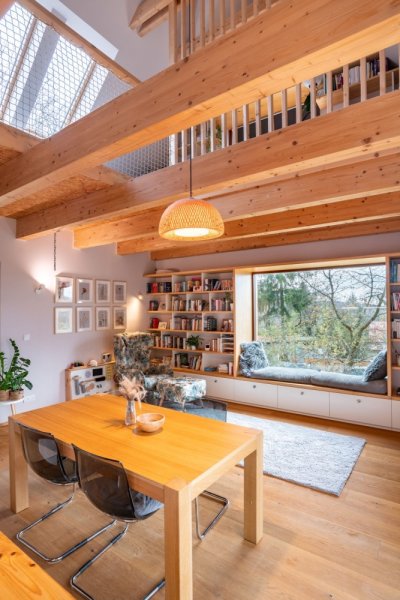 Tento dům nabízí otevřený a propojený prostor pro život s velkou terasou navazující na zahradu. Je zde i galerie, která podporuje pocit pospolitosti. Dům je do jisté míry navržen jako modulární a tak lze v budoucnosti místo galerie zvětšit horní pokoje. Panely z lisované slámy použité ve stěnách jsou zajímavé svou odlišností a schopností akumulovat, jde o difuzně otevřenou konstrukci a z hlediska fungování je dům téměř pasivní i přes velké prosklené plochy.