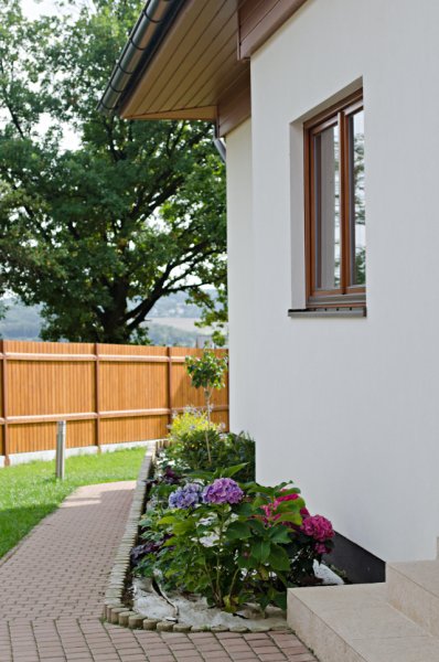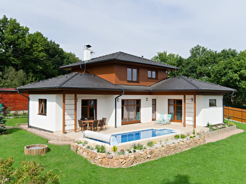 Nízkoenergetický dům s konstrukcí z masivních dřevěných panelů, osazený kvalitními dřevěnými okny s trojskly. Díky systémovému řešení splňuje tato dřevostavba na klíč veškeré nároky na komfortní a zdravé bydlení a poskytuje kvalitní klima a výbornou tepelnou stabilitu v zimě i v létě. Řizené větraní se v zimě stará o přívod čerstvého vzduchu s minimálními energetickými ztrátami díky rekuperaci tepla.