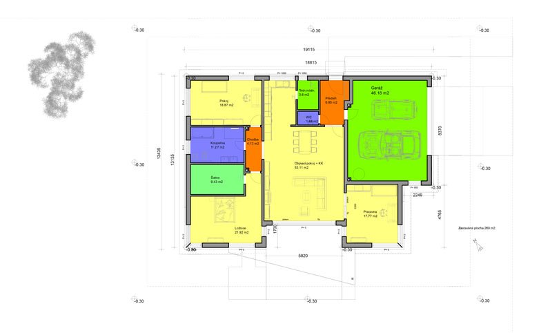 Cena této dřevostavby na klíč je včetně základové desky a DPH. Vnitřní užitná plocha je 188,91 m2 včetně garáže.