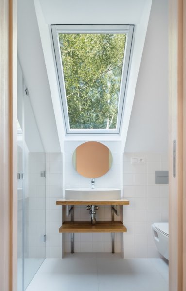 Pohledové dřevo v interiéru je natřeno tvrdým voskovým olejem s bílým pigmentem a UV filtrem. To zajistí, že si dřevo zachová svou čerstvou barvu po další desítky let a zároveň může do interiéru dýchat. Pocit z pohledového dřeva a vůně dřeva v interiéru umožňují našim klientům zdravý a příjemný život.