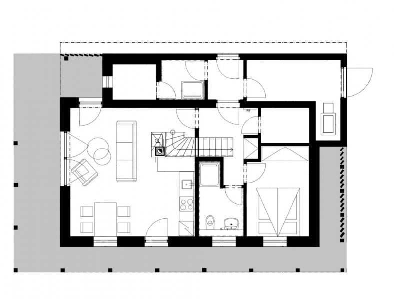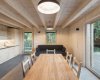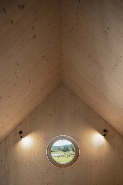 Horská chata na Lipně vychází z tradičního pojetí šumavských staveb, které jsou ze své podstaty dřevěné, kompaktní a útulné. Dřevěné stěny jsou doplněny masivním trámovým stropem se záklopem biodeskou.