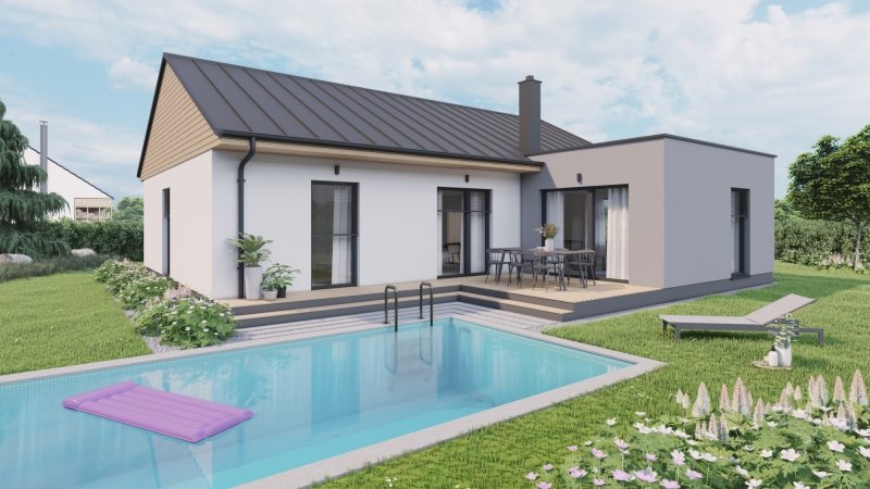 Tento dům umožňuje variantní provedení typu střechy, viz vizualizace.