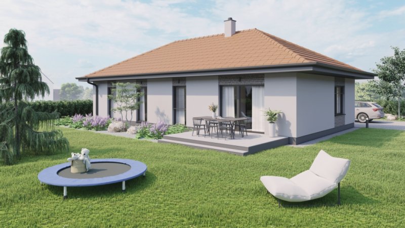Jedná se o tvarově jednoduchý přízemní dům o dispozici 4+kk. Hlavní výhodou tohoto domu je vytvoření zcela oddělené rodičovské části domu s vlastní šatnou a koupelnou.