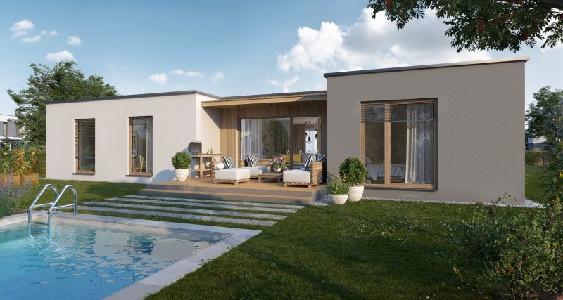 Jedná se o moderní přízemní dům, který je hmotově složen ze 3 kvádrů. Toto hmotové uspořádání umožňuje rozdělení domu na 3 funkční části. Vstupní prostor se zázemím domu a dětskými pokoji, hlavní obytnou místnost, která se nachází v prostřední části a ložnici s koupelnou. Při navrhování byl kladen důraz na propojení všech obytných místností se zahradou.
