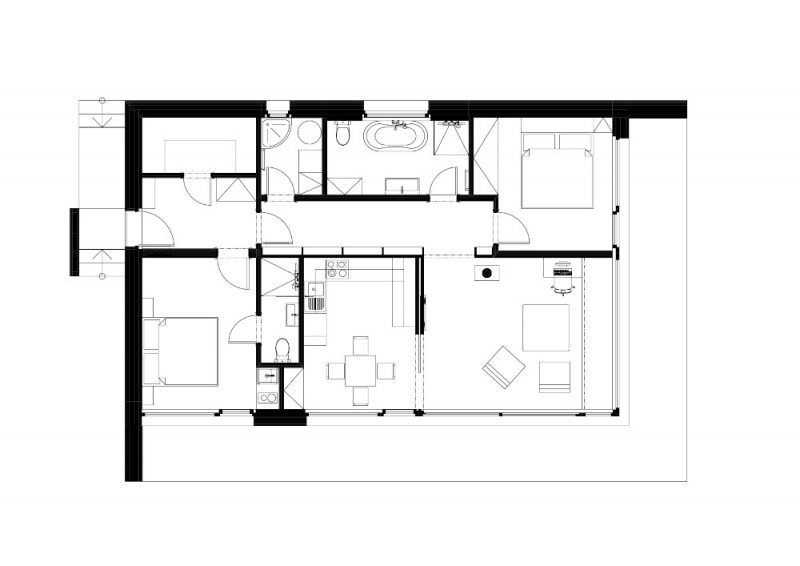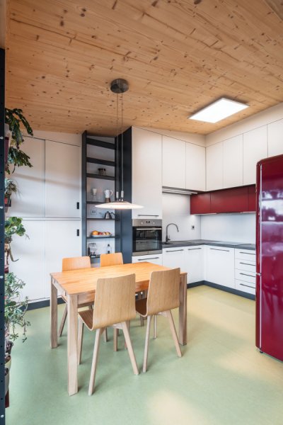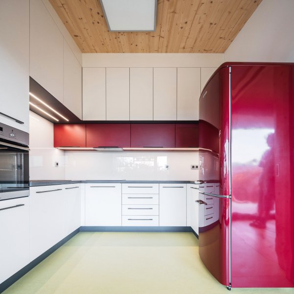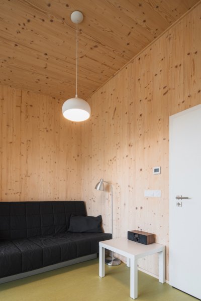 Díky statickým možnostem CLT panelů je ale velké prosklení bez větších příplatků. Nad tímto 15 m oknem pak probíhá konzola střechy, která není podepřena sloupem a ze statického hlediska tak bylo co vymýšlet.