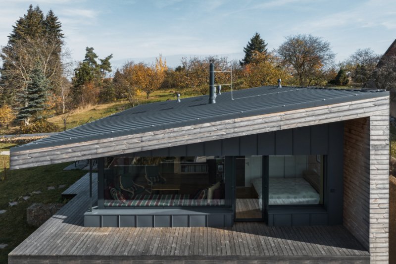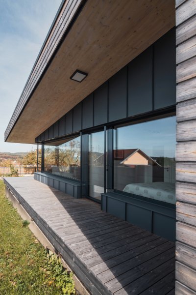 Co se týče prosklení, tak je až neuvěřitelné, že takto malý a skromný dům má jedno z největších rohových prosklení, která jsme kdy na dům instalovali. Rohové okno má 15 metrů.