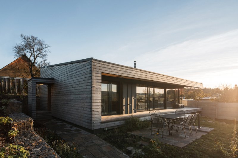 Malý nízkoenergetický dům s dispozicí umožňující maximální propojení se zahradou. Tím v létě dům získává další pobytový prostor.
