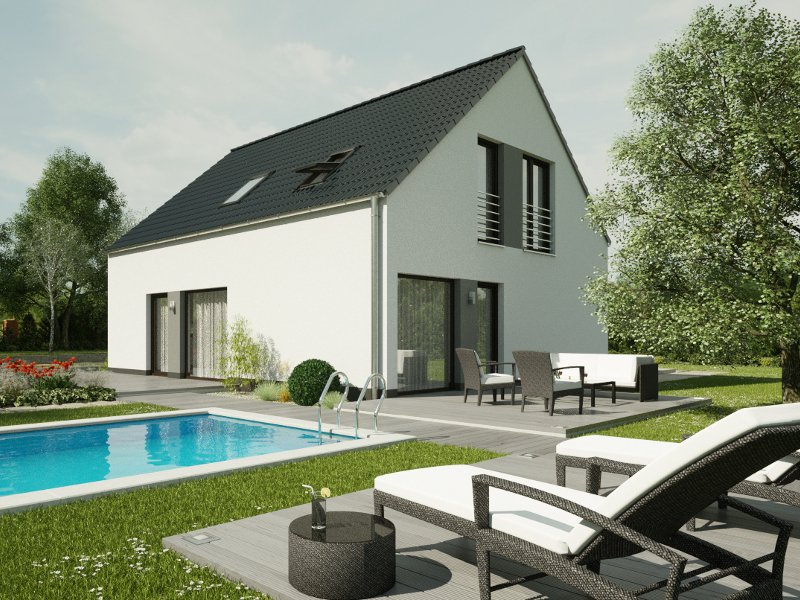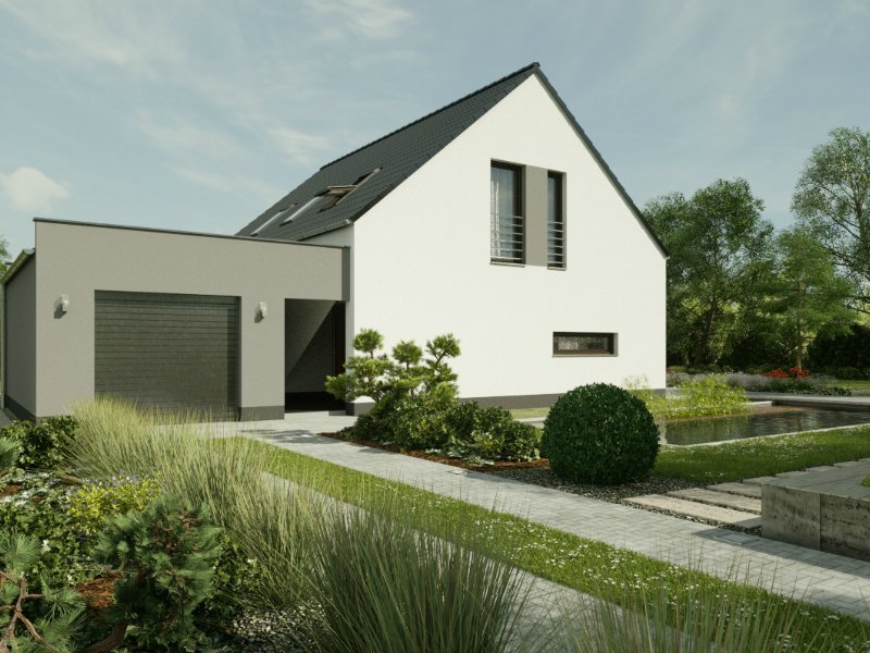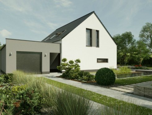 Pokud preferujete klasickou garáž a nevystačíte si třeba jen s garážovým stáním, volte variantu nejoblíbenějšího VEXTA domu s garáží, která s odstupem navazuje na závětří před vstupem do domu. Ulička oddělující garáž a dům pak tvoří další soukromý prostor přede dveřmi do domu. Dům VEXTA 149 je moderní dřevostavba se sedlovou střechou a dispozicí 5+kk.