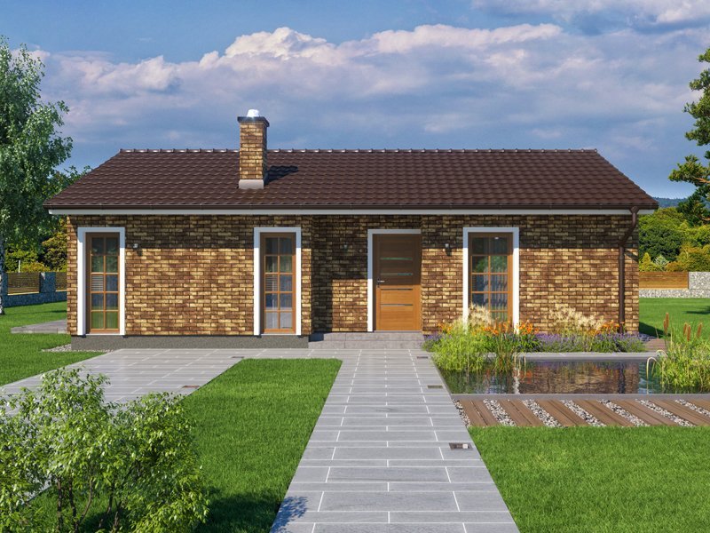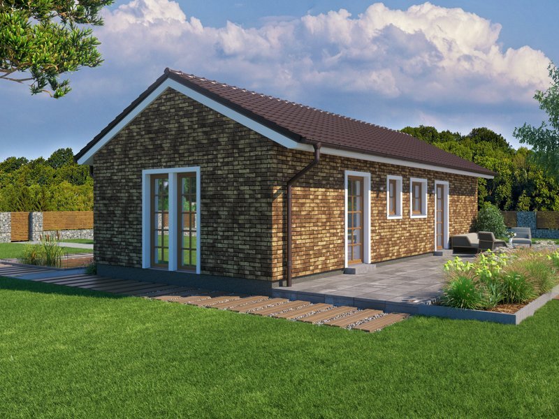 Kompaktní bungalov tradičního vzhledu s dispozicí 3+kk a se sedlovou střechou. Tento dům patří mezi naše menší dřevostavby a je kromě plnohodnotného celoročního bydlení navržen také pro klienty, kteří hledají dům k individuální rekreaci nebo jako víkendové bydlení.