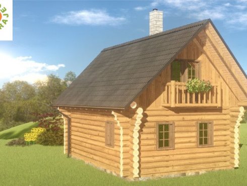 Malý srubový dům se třemi obytnými místnostmi, vhodný k využití jako rekreační chata anebo malý rodinný dům pro nenáročné bydlení.