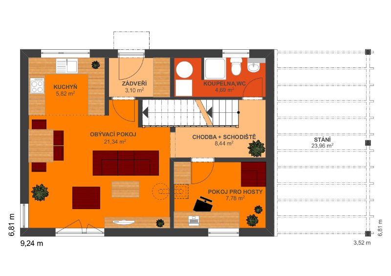 | Cena dřevostavby na klíč (vč. DPH): | 4 344 400 Kč Spočítat financování |