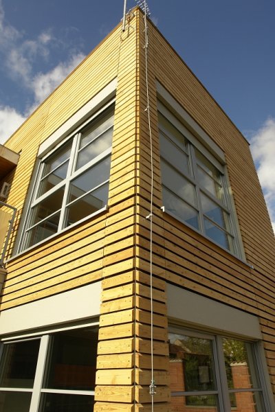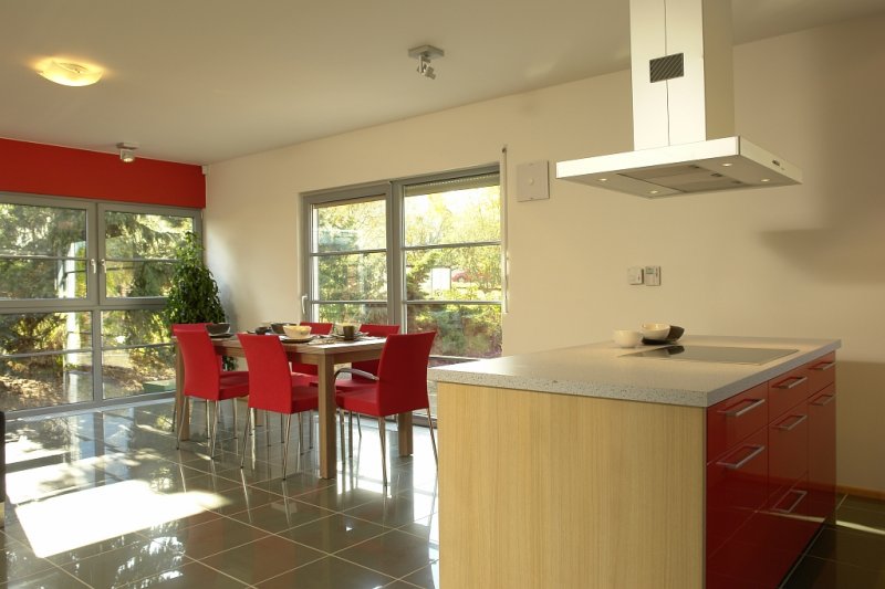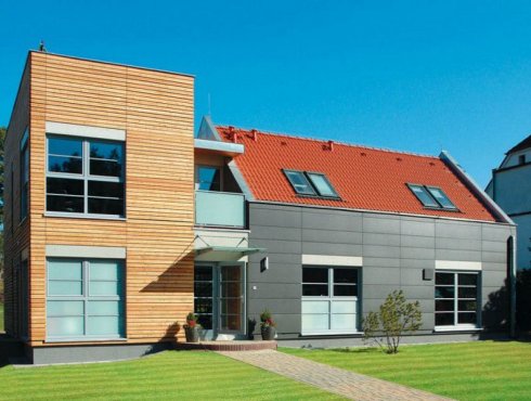 Celý dům je zcela novým přístupem k materiálům i ke ztvárnění vnitřních dispozic domu. Návštěvník zde najde nejen moderní technologie (solární systém na ohřev TUV a přitápění, decentrální větrání se zpětným ziskem tepla, inteligentní systém Synco Living apod.), ale i ukázku obkladu domu dřevem a cembonitovými deskami.