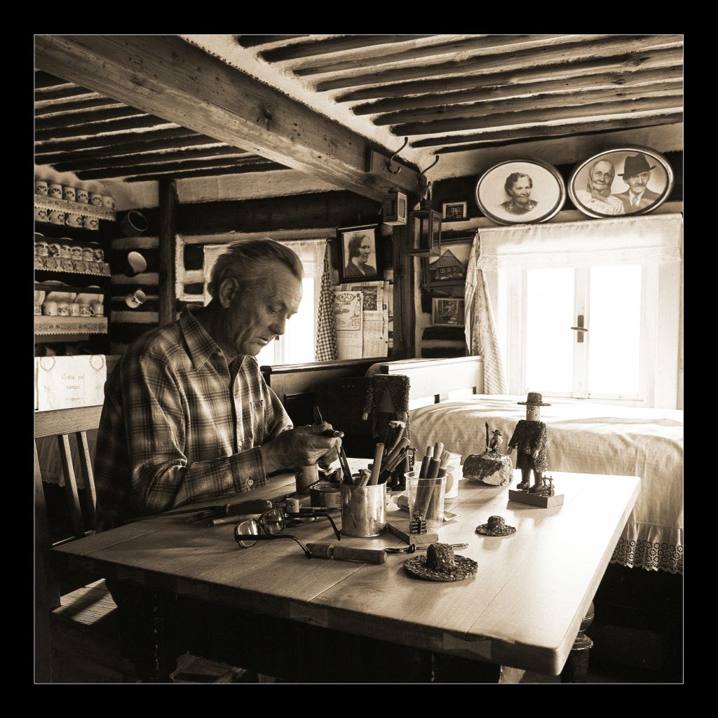 K práci jim stačí špalík lipového dřeva, stůl, nožík, nějaká ta pilka, pár štětců a barvy rozmíchané do plechových víček z lahví. Nic víc není zapotřebí. Malá dílka, velký koníček.