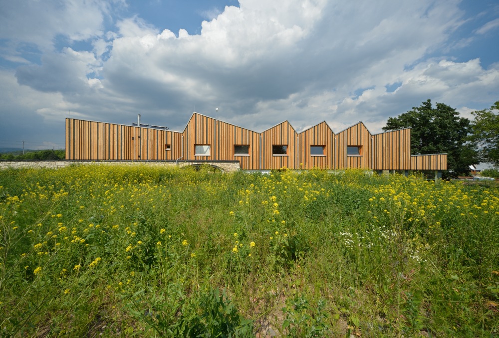 Když se dřevozpracovatelská společnost JACER-CZ rozhodla pro renovaci původní zemědělské usedlosti z druhé poloviny 19. století, se dřevem jako stavebním materiálem se automaticky počítalo. Přestože původní ideová studie kalkulovala při využití areálu se zbořením stávajících zchátralých staveb, architekti ze studia 3+1 architekti se nakonec rozhodli pro konverzi.