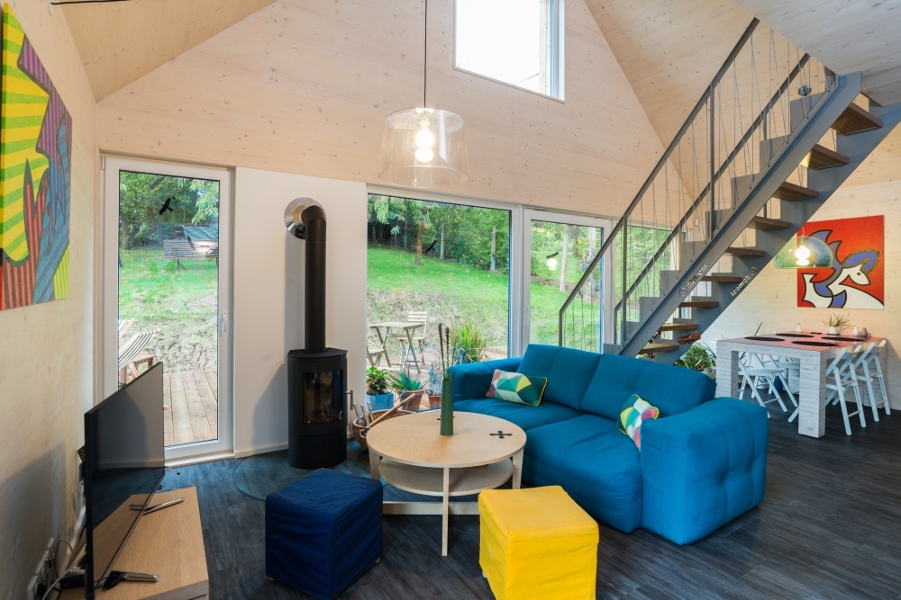 - Atraktivní design: Pro tuto technologii je charakteristické přiznání atraktivní textury dřeva v interiéru či střídání stěn dřevěných s jinou povrchovou úpravou.