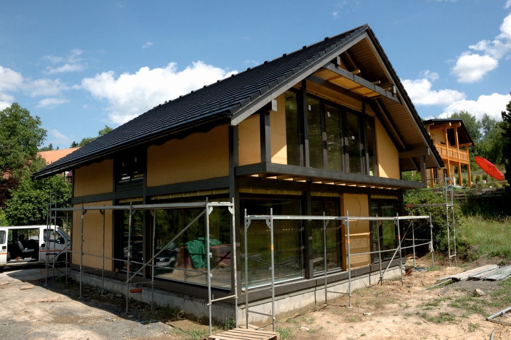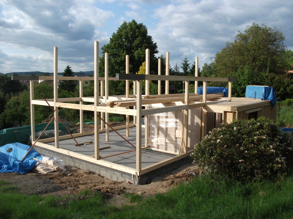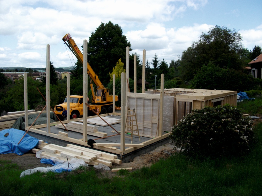 Realizace domu je zahájena přípravou terénu a výstavbou základové desky. Na desku je postavena konstrukce těžkého skeletu z lepených hranolů a moderních tesařských styčníků přesně opracovaných pomocí CNC technologie. Konstrukce se vyznačuje pohledovou kvalitou, přesností opracování, tvarovou stálostí a nádherou masivního dřeva...