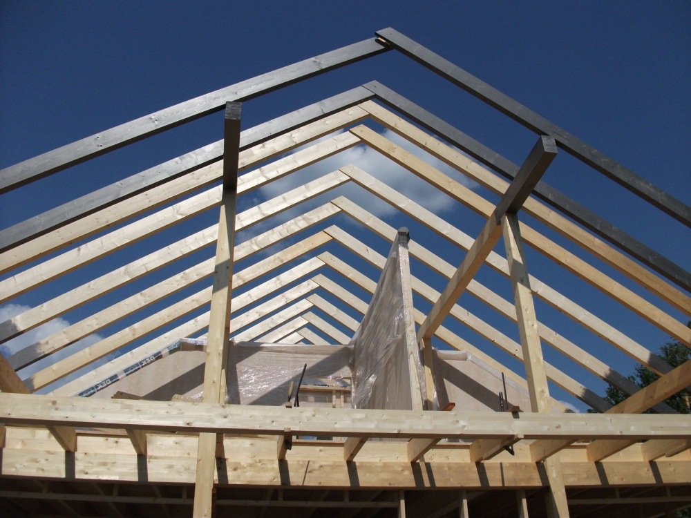 Trámy jsou natřené speciální šedou lazurou s příměsí kovových částic, tento nátěr je patrný jak v exteriéru tak interiéru domu. Na hotovou kostru domu se nasadí vaznicový krov pro klasickou sedlovou střechu.