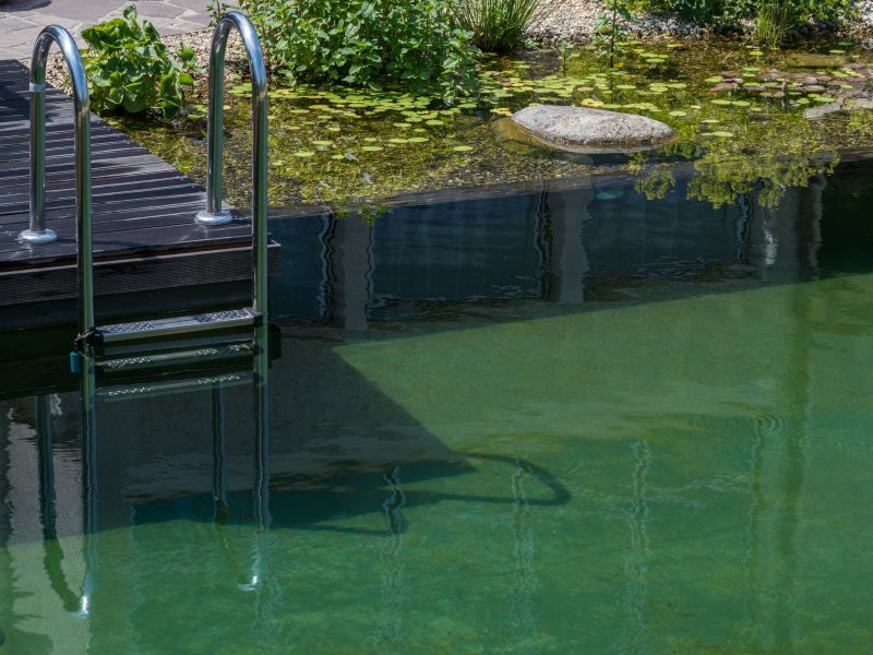 Automatický samočistící systém jednak separuje mechanické nečistoty, jednak vodu čistí i biologicky, Celé zařízení se nachází pod úrovní terénu a je zakryto dřevěnou palubou, která zároveň slouží pro slunění nebo osušení po koupání. Filtry totiž pracují velmi tiše a neruší ani při tichém večerním posezení. Živiny, které podporují růst řas, odebírají z vody rostliny vysazené ve štěrkovém loži po stranách koupací části jezírka.