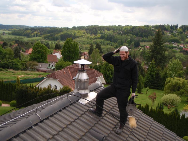 Samozřejmě pohodlnější a bezpečnější je vůbec svěřit čištění kominíkovi – služba vyjde řádově na několik stokorun, což v porovnání s rizikem pohybu na střeše není nijak závratná částka. Naopak kontrolu spalinové cesty může podle zákona provádět výhradně odborně způsobilá osoba.