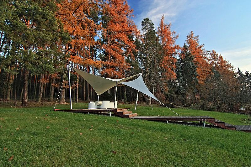 Moderní roubenka v trampské osadě