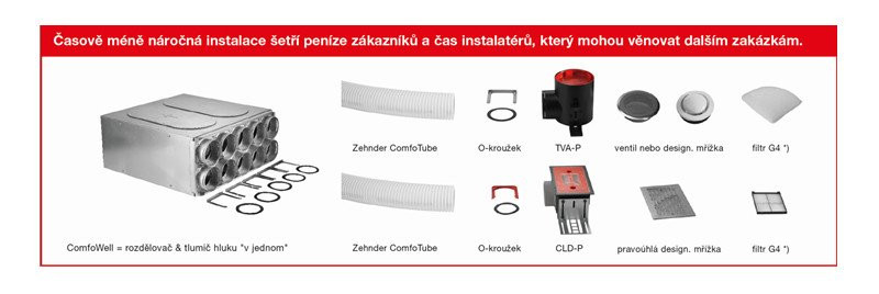Zákazníci od komfortního větrání s rekuperací tepla očekávají "stále čerstvý čistý vzduch" s úsporou nákladů na vytápění. To zajistí pouze fungující systém, vyžadující odborný návrh a instalaci stejně jako kvalitní větrací jednotku a odpovídající rozvody vzduchu. Volbou produktů Zehnder můžete těžit z mnohaletých zkušeností, získáte nejvhodnější návrh, záruku kvylitní instalace a maximální funkčnosti.
