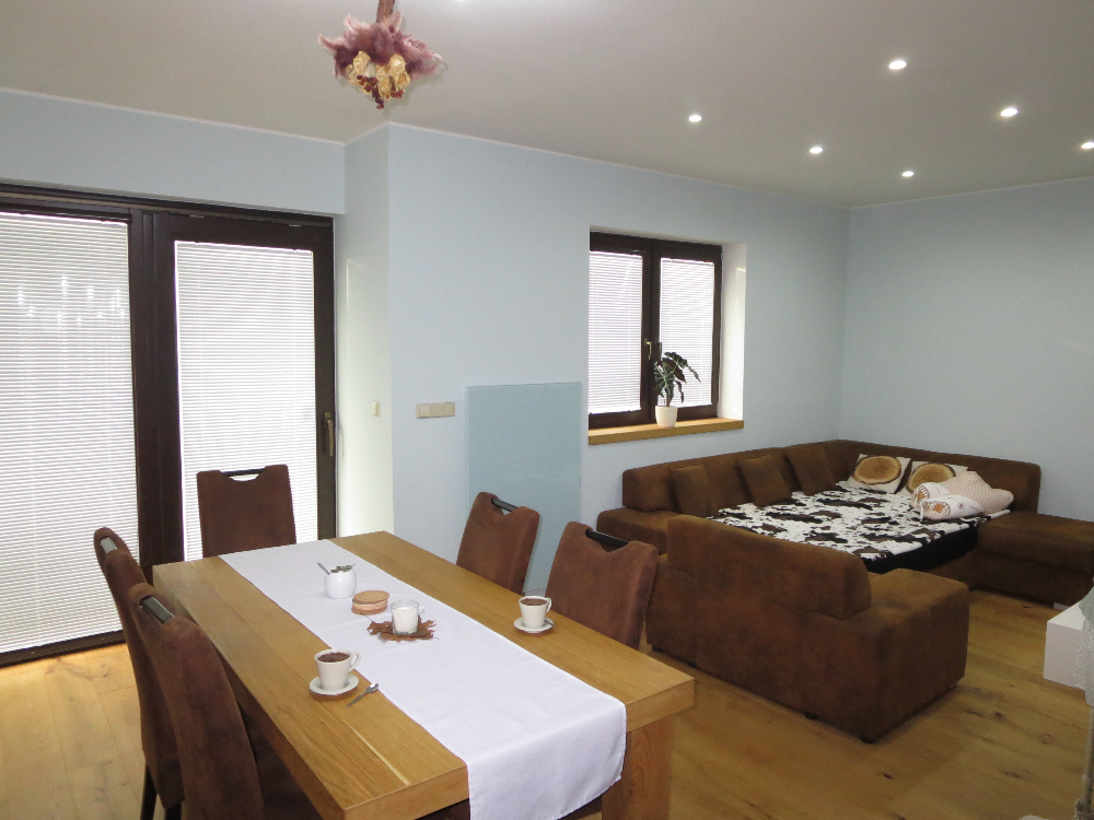 Dřevostavbu o velikosti 5+kk užívá rodina se dvěma dětmi od konce roku 2014. Bungalov, až na rekuperaci, která zde není instalována, splňuje všechny parametry pasivního domu. Rodinný dům má užitnou (vytápěnou) plochu 145 m2. Ve vybraných zónách je instalováno podlahové vytápění – v místnostech s plovoucí podlahou jsou topné fólie ECOFILM, v místnostech s keramickou dlažbou pak topné kabely ECOFLOOR. Protože podlahové vytápění zajišťuje především komfort teplé podlahy, pro doplnění příkonu a také zlepšení dynamiky teplotního náběhu jsou v dětských pokojích nainstalovány sálavé topné panely ECOSUN E, v ložnici a velkém obývacím pokoji pak skleněné sálavé panely GR. Zvolený topný systém s centrální regulací si uživatelé kromě příznivých pořizovacích i provozních nákladů pochvalují především pro jeho naprosto automatický, bezobslužný provoz. V obývacím pokoji jsou také umístěna krbová kamna o výkonu 6 kW, která jsou využívána převážně v přechodném období, kdy se venkovní teploty pohybují mezi 5–10 °C a také v zimě ve volných dnech (víkendy). Příprava TUV je zajištěna elektrickým zásobníkovým ohřívačem vody.