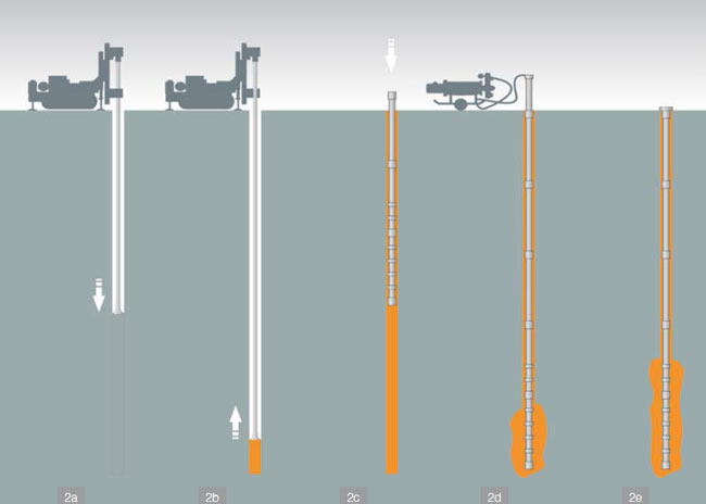 Cementová emulze je pod obrovským tlakem vtlačována do okolní zeminy a vytváří tak doslovně kořen – na okrajích kořene je již emulze smíšena s okolní zeminou.