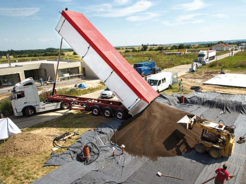 Na připravenou geotextilii se naveze pot řebná vrstva tepelně izolačního kamenivaLiapor Ground, která se upraví a zhutní.