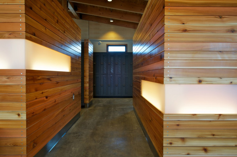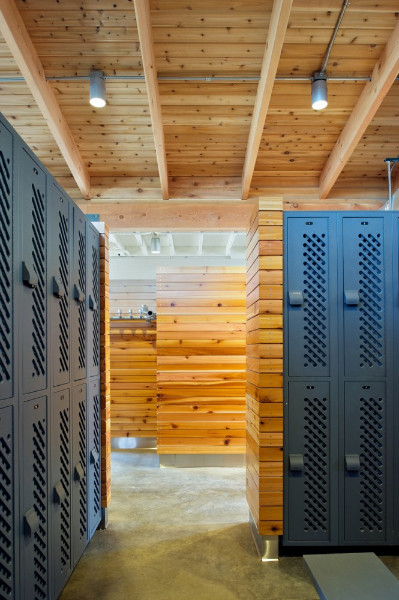 Parkoviště bylo zbudované z betonových tvarovek, které postupně prorostou trávou, některé střechy byly navrženy jako zelené, protože se jedná o letní zařízení, maximální důraz byl kladen na velké přesahy střech, speciální zasklení a účinné přirozené provětrání, díky čemuž nemusí být používán nehospodárný systém klimatizace. Vzhledem k nedalekému mokřadu musel být zvláštní pozor kladen především na hospodaření s dešťovou vodou, která se jen těžko vsakuje do okolní přesycené zeminy. Součástí objektu je tak velké vsakovací štěrkové pole s vodomilnými rostlinami, které srážkovou vodu rychle odvádí do velké retenční nádrže – přírodního rybníka. Odtud se voda pomalu zasakuje do podloží.